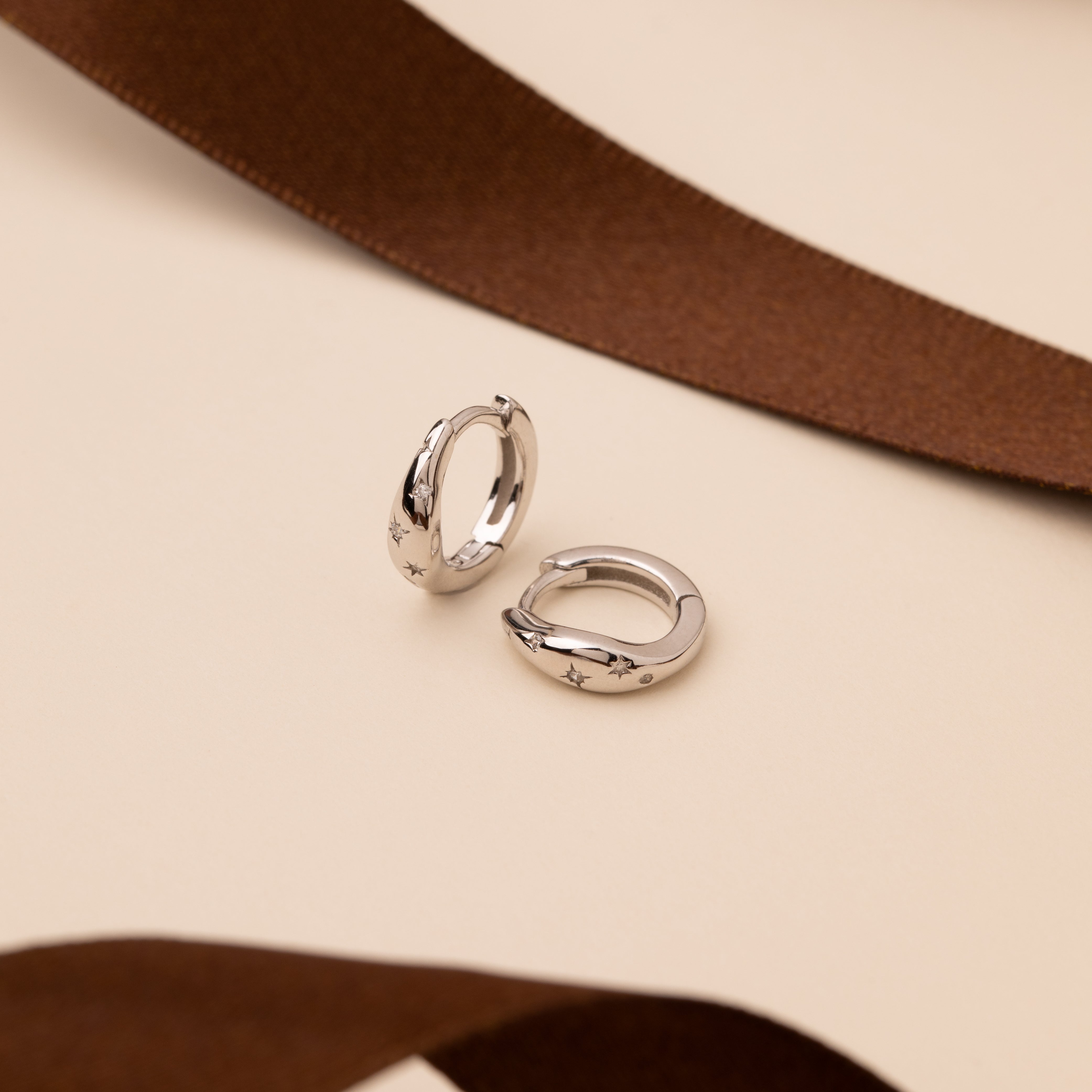 The Astra Huggies are small yet eye-catching, designed to bring a refined touch of sparkle to everyday wear. Handcrafted from 925 sterling silver and finished in rhodium or 1-micron 18ct gold plating, each pair is protected with a layer of E-coating for lasting shine.